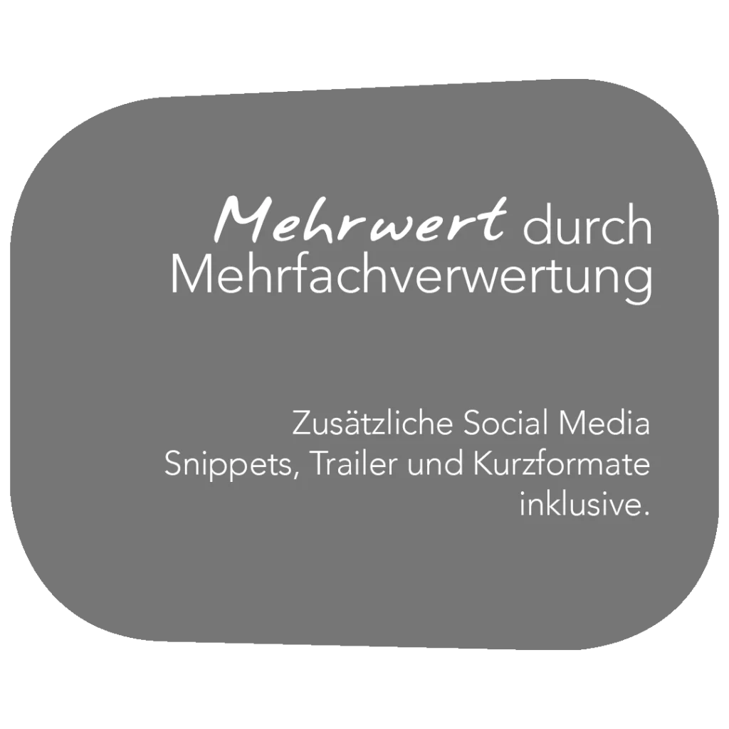 Wir erstellen nicht nur Ihren Film, sondern betreuen auch die Ausspielung, steuern Ihre Social-Media-Kampagnen und sorgen so dafür, dass Ihr Content auch die Reichweite bekommt, die er verdient.